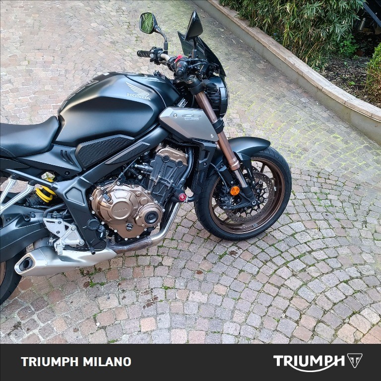 HONDA CB650R, colore Nero, Top di gamma delle roadster medie di casa Honda. Moto con 18781km. Moto in buone condizioni. Monta copolino fumè, leve nere e tamponi para motore. Pneumatici al 50%. Visionabile presso Triumph Milano in via Eugenio Brizi, 4. Per maggiori informazioni 02 9974 8923