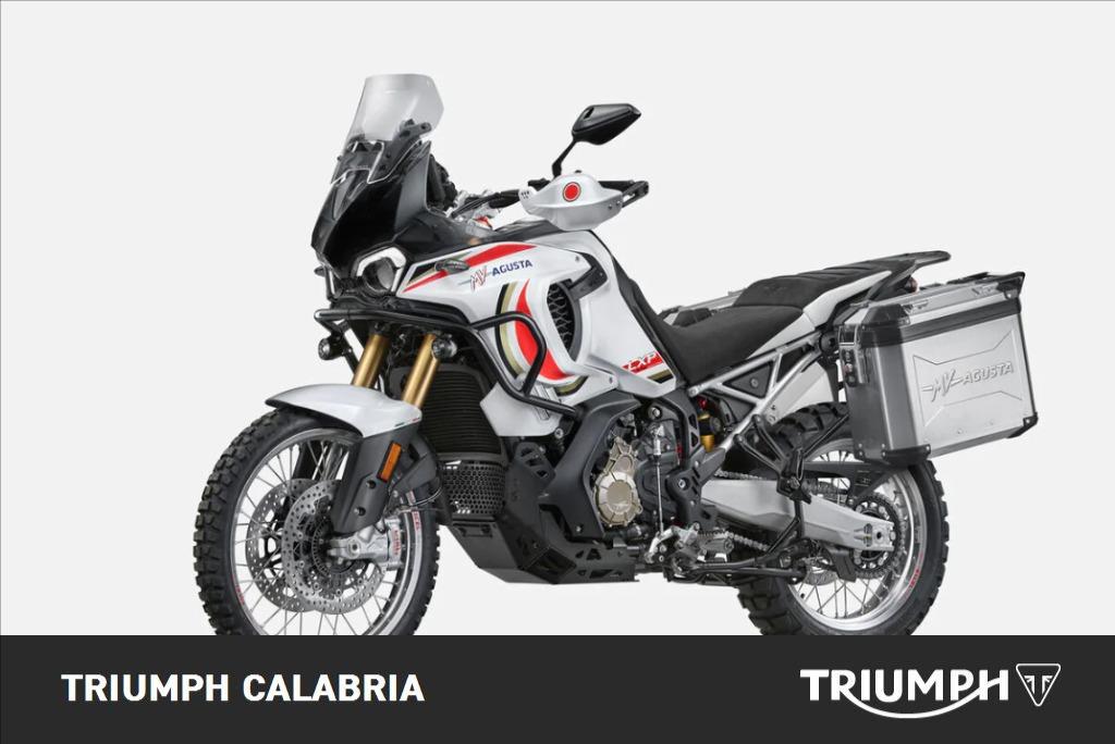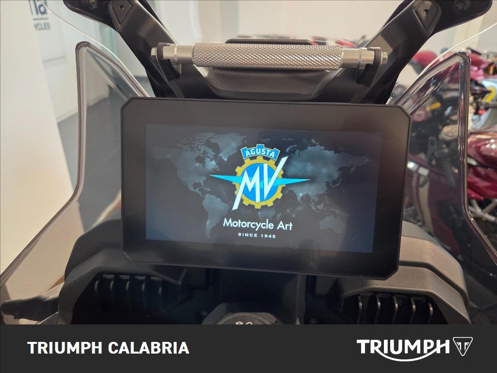 Accessori di serie Cruscotto TFT 7” in HD con display a colori Connettività Bluetooth e Wi-Fi - Cruise control Launch control - Traction Control 8 livelli Sensore GPS – Immobilizer – Proiettore anteriore Full led con DRL – Fanale posteriore full led Luci fendinebbia - Paracoppa racing - Telaio paracolpi - Mozzi ruota CNC - MV Ride App per mirroring indicazioni di navigazione, setup elettronico di motore e veicolo - Mobisat antifurto con geolocalizzazione - Borse laterali in alluminio (da 33 e 39 l.)