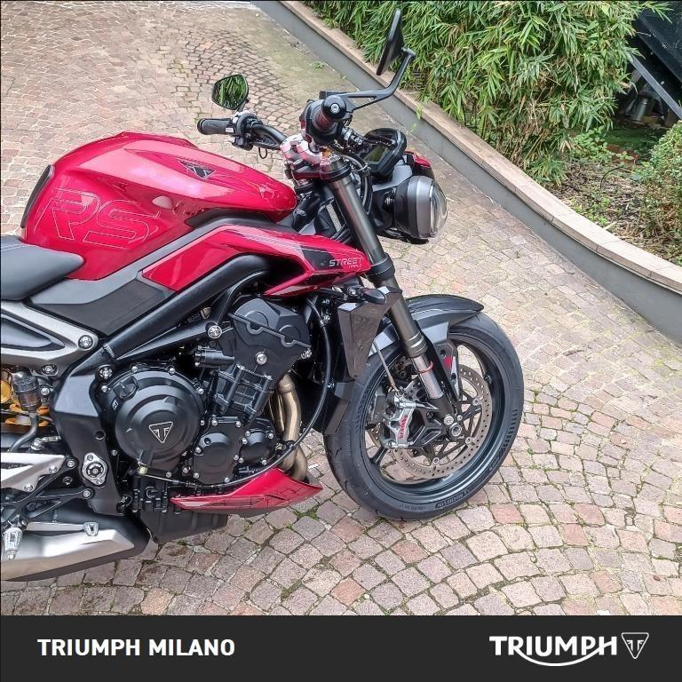 TRIUMPH STREET TRIPLE RS 765, colore Rosso, Top di gamma delle Roadster medie di casa Triumph. Moto con 24427km. Moto in condizioni ECCELLENTI. Completamente protetta da PPF. Monta cruise control, portatarga corto Evotech, protezione radiatore Evotech, cartucce forcella MISANO EVO Ohlins-Andreani e para serbatoio. Tagliando con gioco valvole appena effettuato, kit trasmissione nuovo. Storico sevice ufficiale. Gomme all'80%. Visionabile presso Triumph Milano in via Eugenio Brizi, 4. Per maggiori informazioni 02 9974 8923.