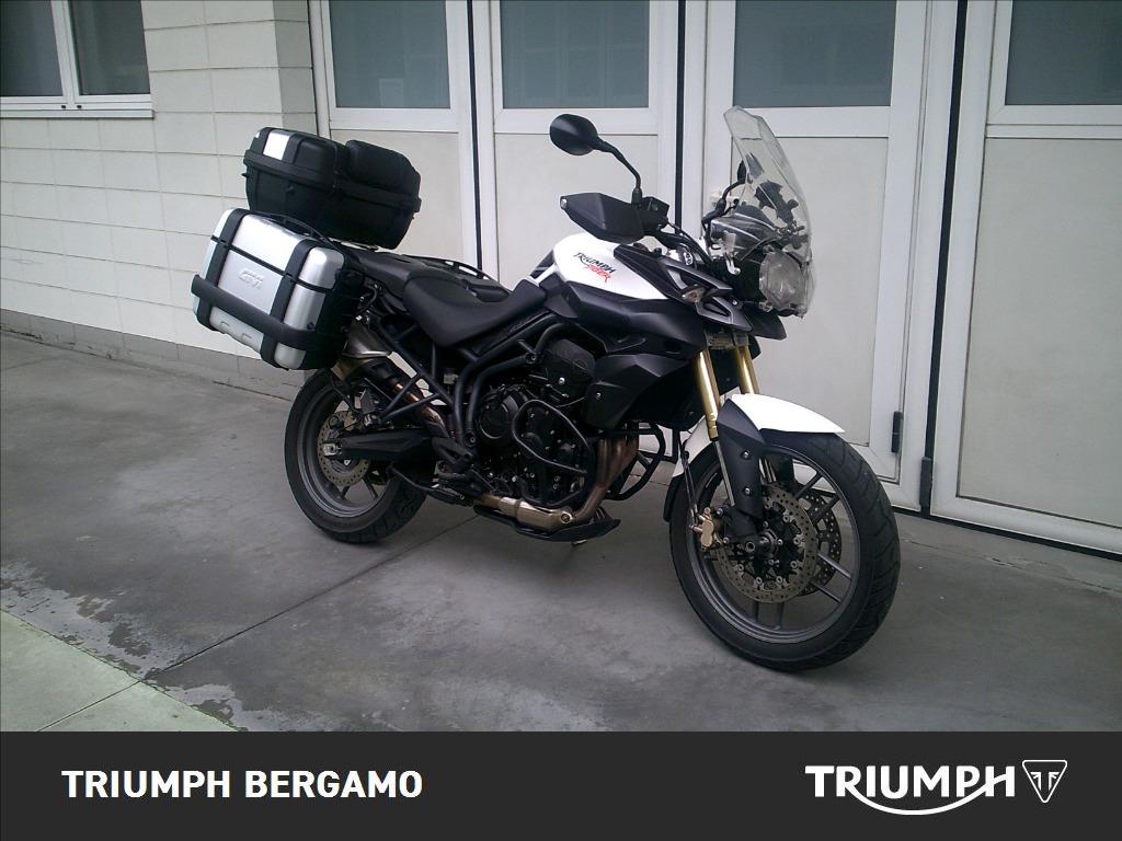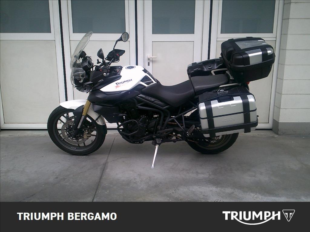 Triumph Tiger 800 ABS immatricolato 06/2011 con accessori : Cavalletto centrale - Barre paramotore basse - Manopole riscaldate ( Oxford ) - 3 valigie Trekker Givi - Plexi alto regolabile - Protezione faro anteriore.
